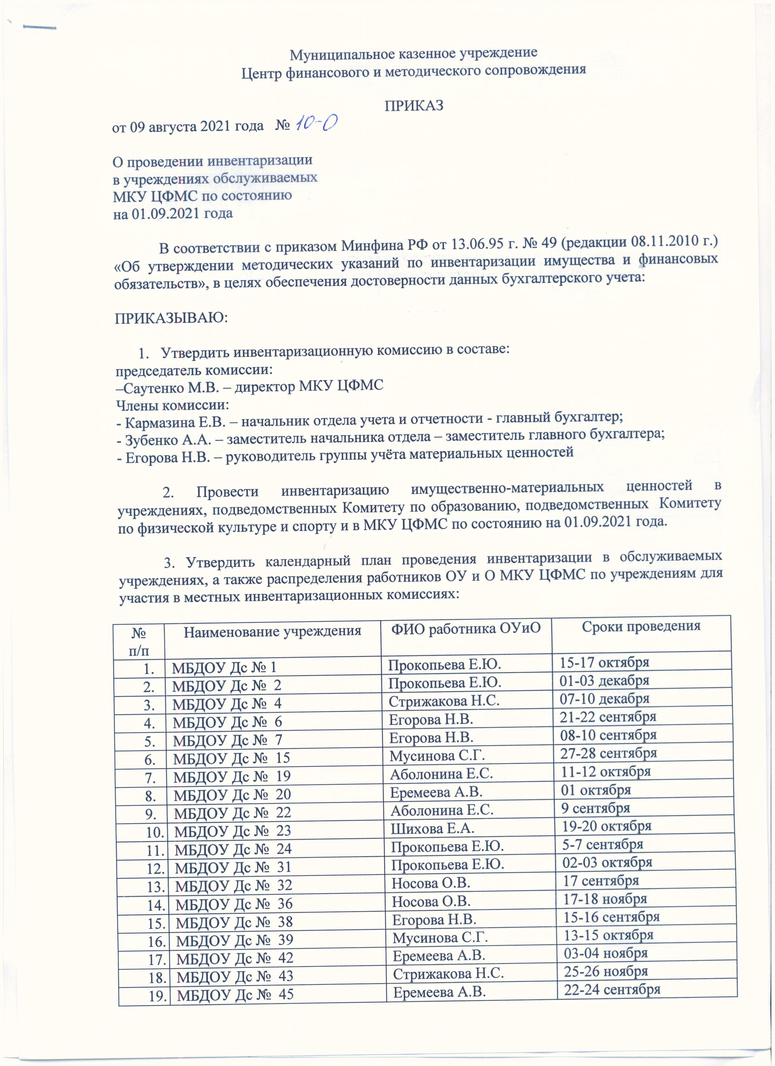 В соответствии с указанием учредителя размещаем на официальном сайте учреждения приказ о проведении инвентаризации.